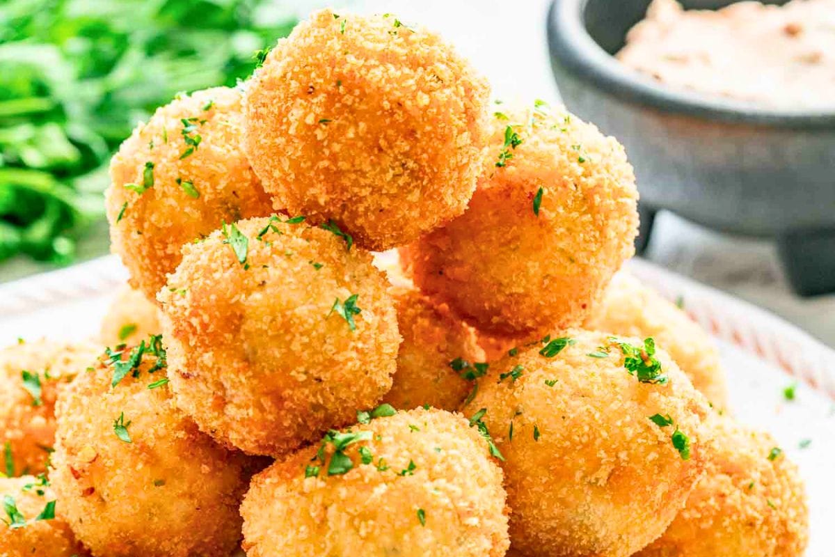 Crispy Potato Croquettes stuffed with bacon and cheese. Easy to fry, bake, or air fry. Perfect appetizer or snack!