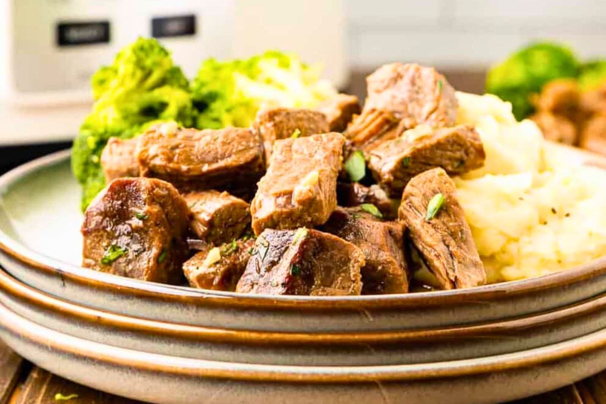 Crockpot Steak Bites are so deliciously tender! Sirloin steak is slow-cooked in ranch seasoning and garlic.