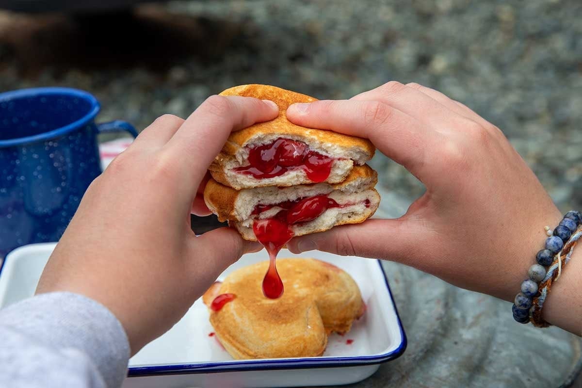 Canned biscuits, cherry pie filling, marshmallows, and chocolate chips come together to make this wonderful pie iron cherry pie recipe.