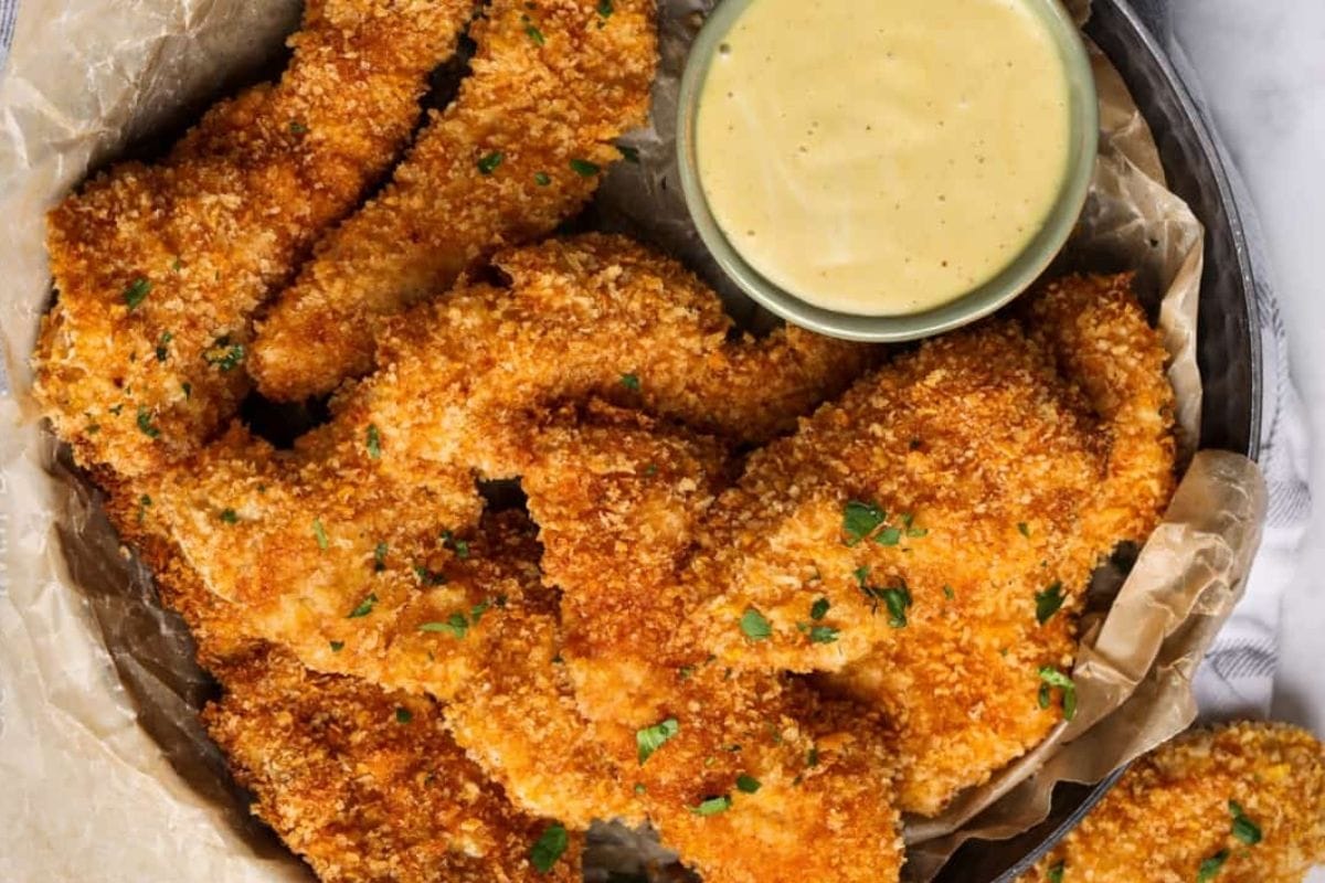 Chicken Tenders are coated in a seasoned breadcrumb mixture and then oven-baked until crispy. Serve with your favorite dips & homemade fries!