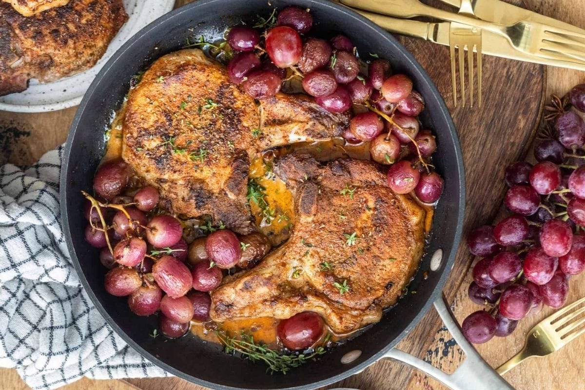 Garlic Rosemary Pork Chops With Roasted Grapes