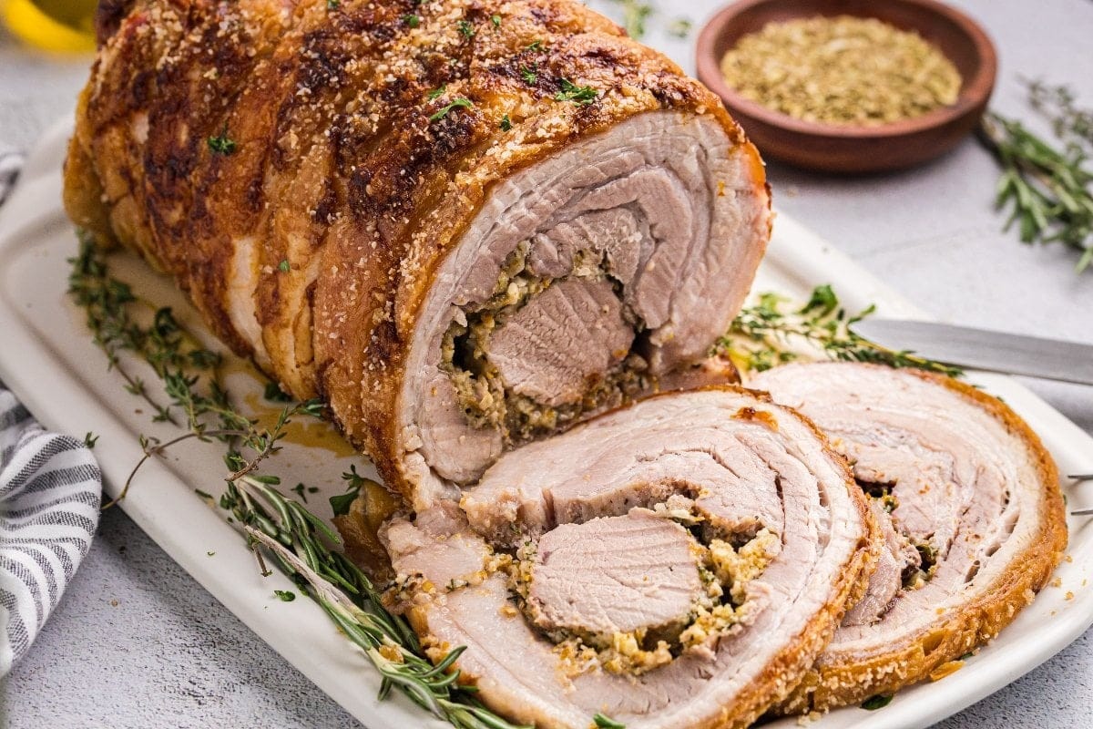 This porchetta roast features pork belly, pork loin, herbs and fennel for crisp skin, juicy meat and true Italian flavor in every slice.