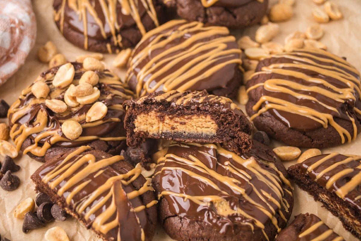 Peanut Butter Stuffed Chocolate Cookies are rich, soft, and chewy with a gooey peanut butter center. Made with simple ingredients, they deliver the perfect balance of chocolate and peanut butter in every bite. A quick frozen filling trick ensures each cookie bakes up with a perfectly melty center.