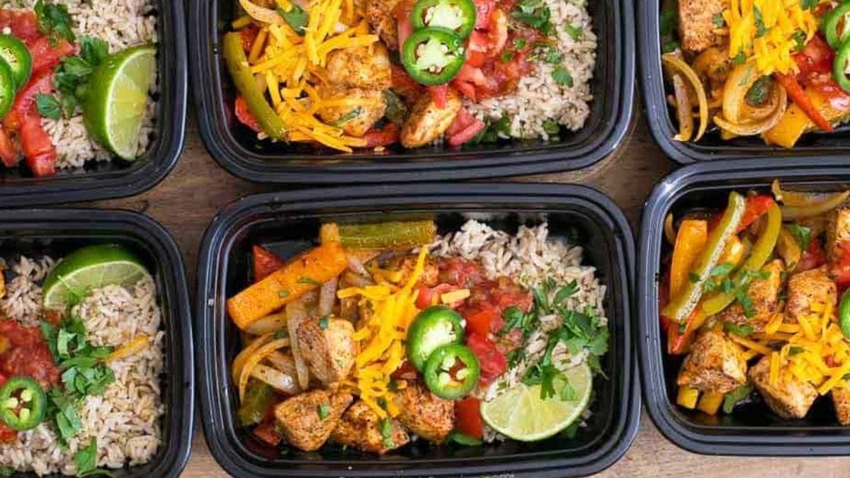 Make a busy week easier with simple make-ahead ideas! These Fajita Meal Prep Bowls are made with rice topped with veggies and chicken.