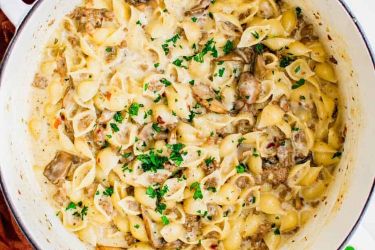 This pasta alla Norcina recipe is creamy, hearty and packed with juicy pork sausage, mushrooms and cheese for a classic Italian meal.
