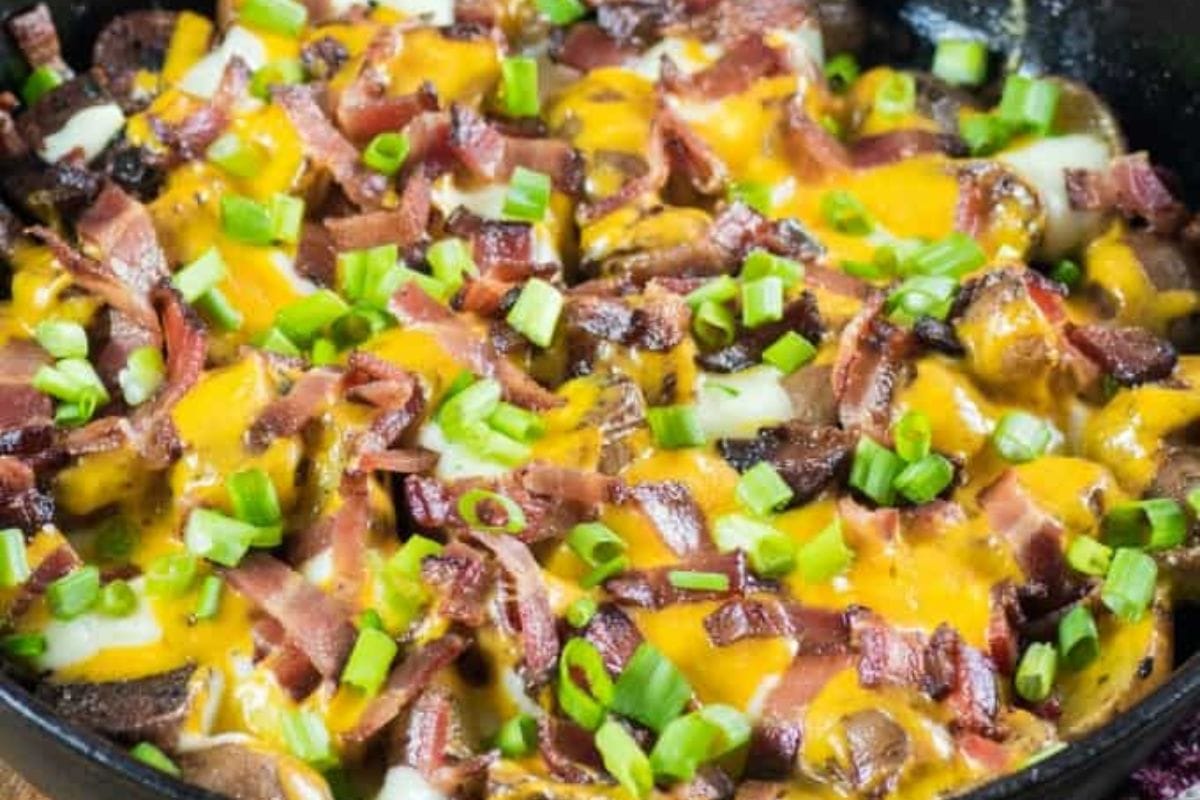 Hot, cheesy, and loaded with bacon, campfire potatoes are an easy, crowd-pleasing foil packet side dish for BBQs, camping, and cookouts.