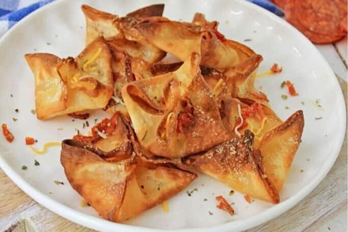 Grab some wonton wrappers and stuff them full of pizza flavors for a tasty mash up appetizer that you are going to want to make all of the time! The crunchy wrapper pairs so well with the gooey center!