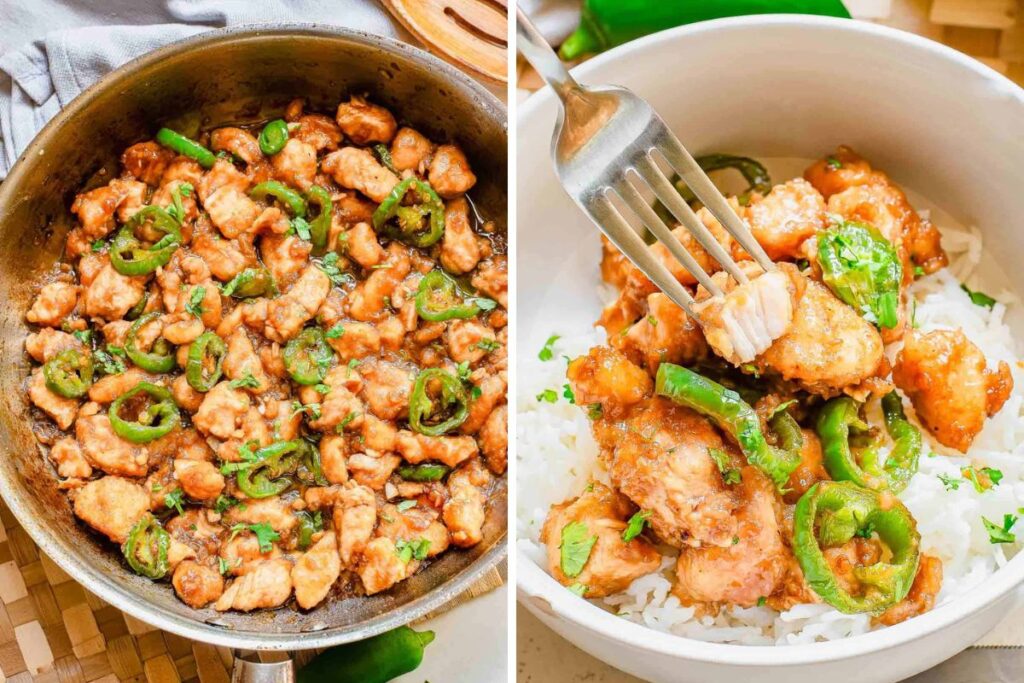 Make takeout-worthy jalapeño chicken at home in 15 minutes. Enjoy crispy chicken, spicy jalapeños, and a sweet, sticky sauce over rice.