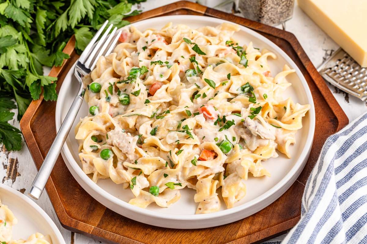 This tasty tuna pasta dish makes a great midweek dinner and can be on the table in under half an hour using pantry staples. If you’ve used boxed tuna helper in the past, you might be wondering whether homemade tuna helper is better, and the answer is definitely yes! With a copycat recipe this quick and easy (that doesn’t use soup), it’s always worth making your own. This cheesy, creamy, budget-friendly tuna noodle casserole is sure to appeal to the whole family.