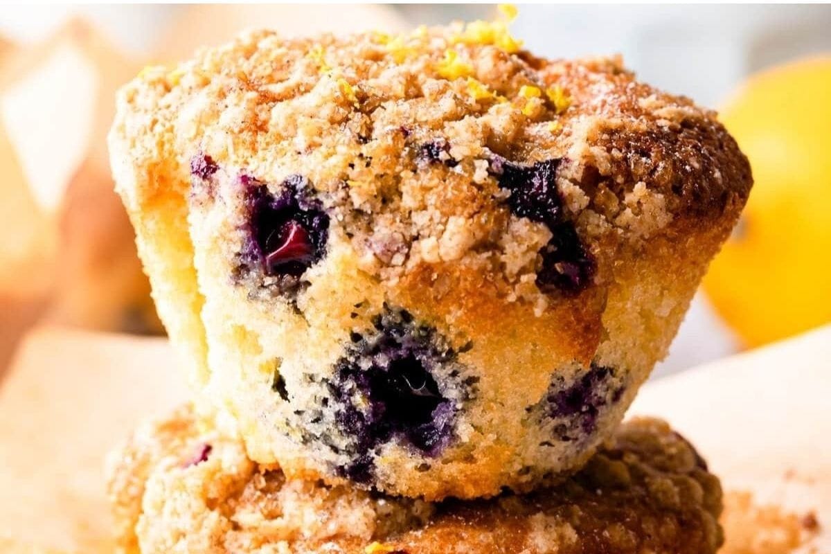 Extra soft and super moist blueberry and lemon muffins, topped with crunchy streusel and sugar coating. Quick, easy and impossible to resist!