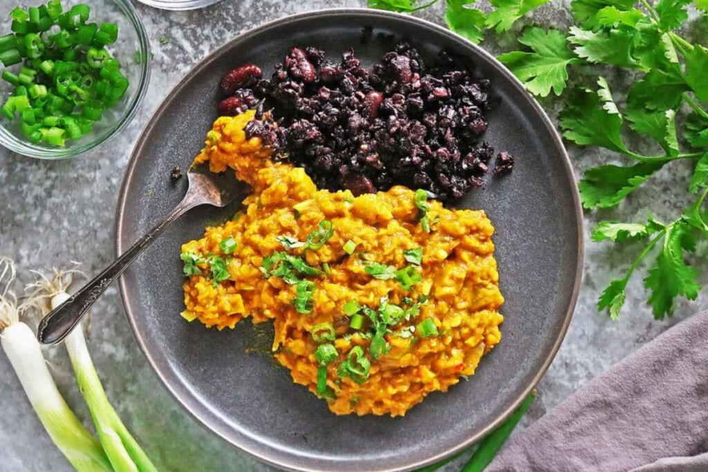 This creamy and easy vegan Lentil Curry is made with staples from our pantry such as canned lentils, canned pumpkin, and canned coconut milk.
