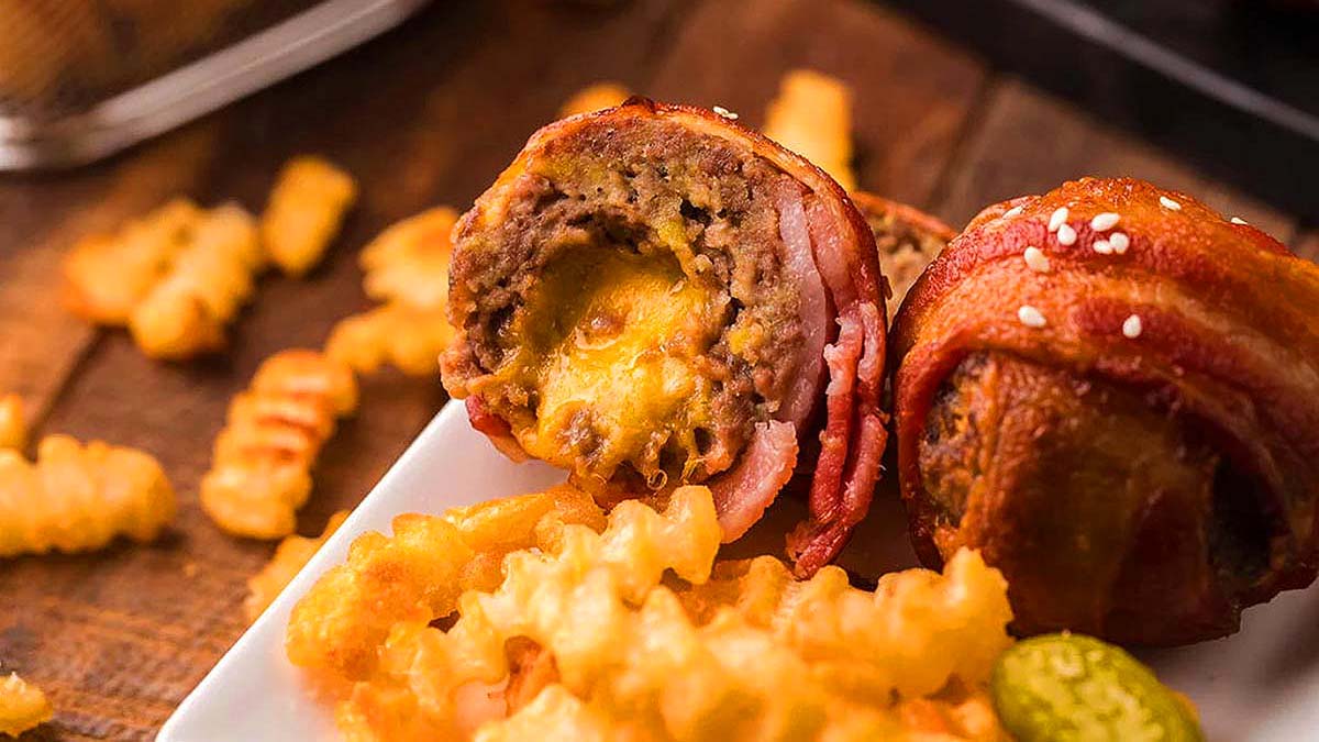 Get the Recipe: Air Fryer Bacon Wrapped Cheeseburger Bites