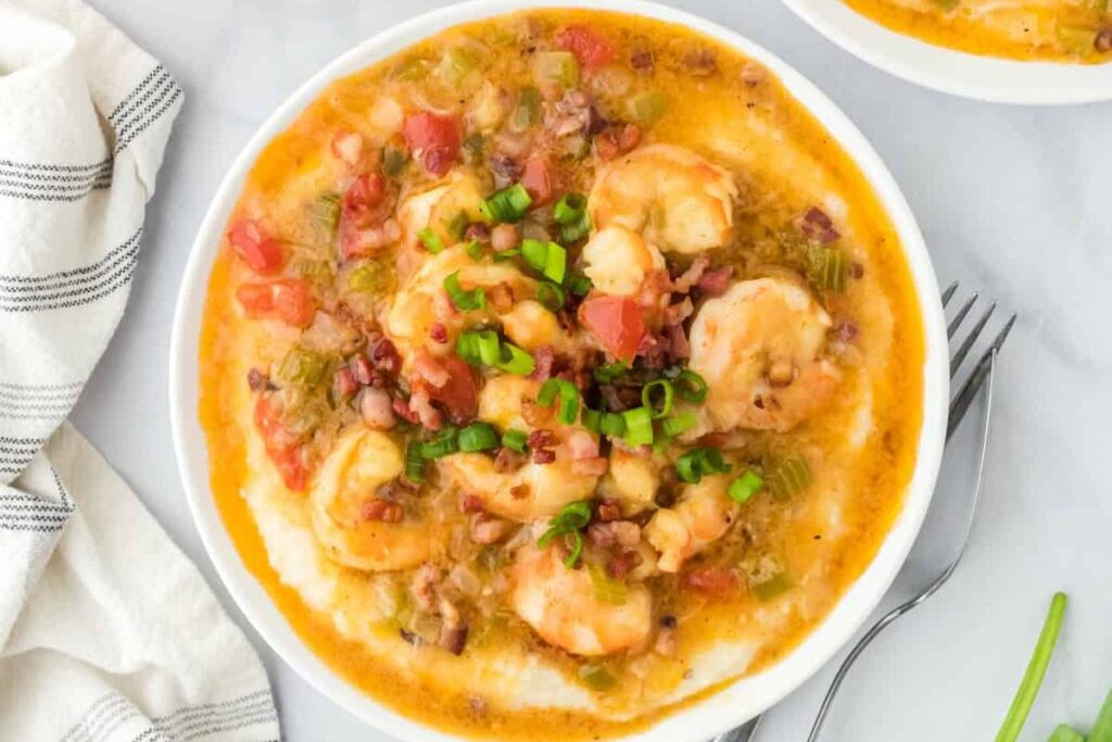 This Shrimp and Grits recipe is epic! We spoon a flavorful shrimp gravy over buttery, creamy seafood stock infused grits.