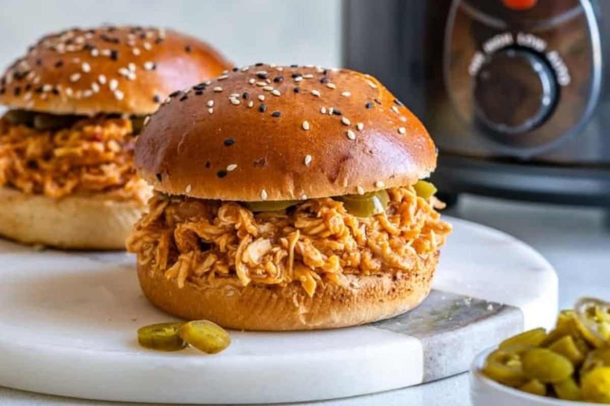 Slow Cooker Pulled Chicken Burger
