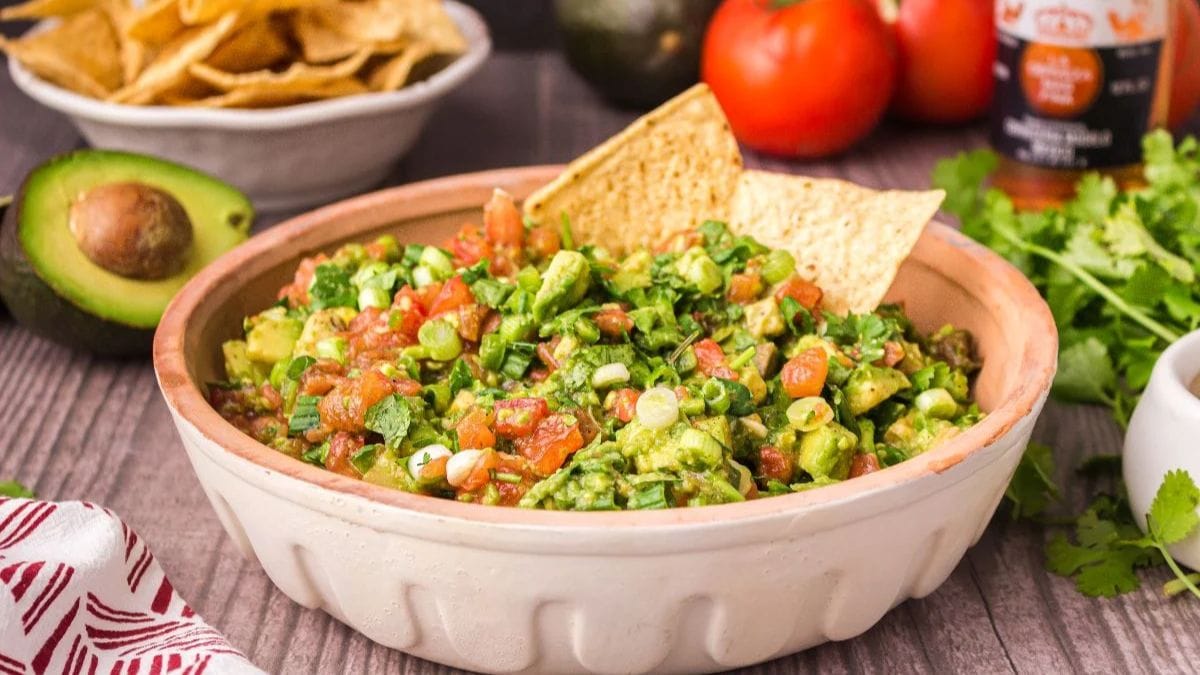 This chunky guacamole recipe is a delicious and easy-to-make dish that can be customized to suit your taste preferences. Made with avocados, tomatoes, green onions, chilies, lime juice, and cilantro, it is a perfect addition to any meal.